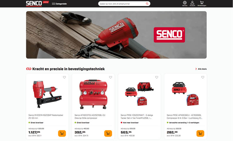 Senco Online is geautoriseerd dealer van SENCO, expert in professionele bevestigingstechniek. Ontdek originele tackers, nietmachines, compressoren en accessoires voor efficiënt en duurzaam werken binnen interieurbouw en industriële toepassingen.
