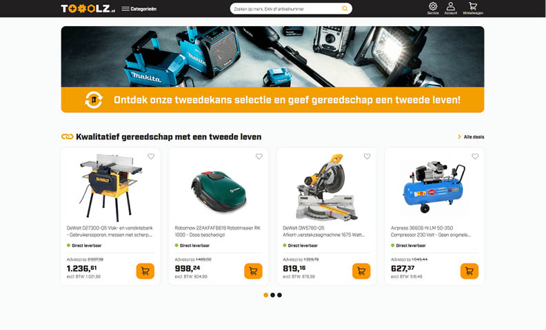 Tooolz geeft hoogwaardig tweedekans professioneel gereedschap een tweede leven, zorgvuldig gecontroleerd en geleverd met garantie. Ontdek topmerken zoals DeWalt, Makita en Bosch tegen gereduceerde prijzen, direct leverbaar. Een duurzame en betrouwbare keuze voor vakmensen die kwaliteit zoeken zonder onnodige kosten.